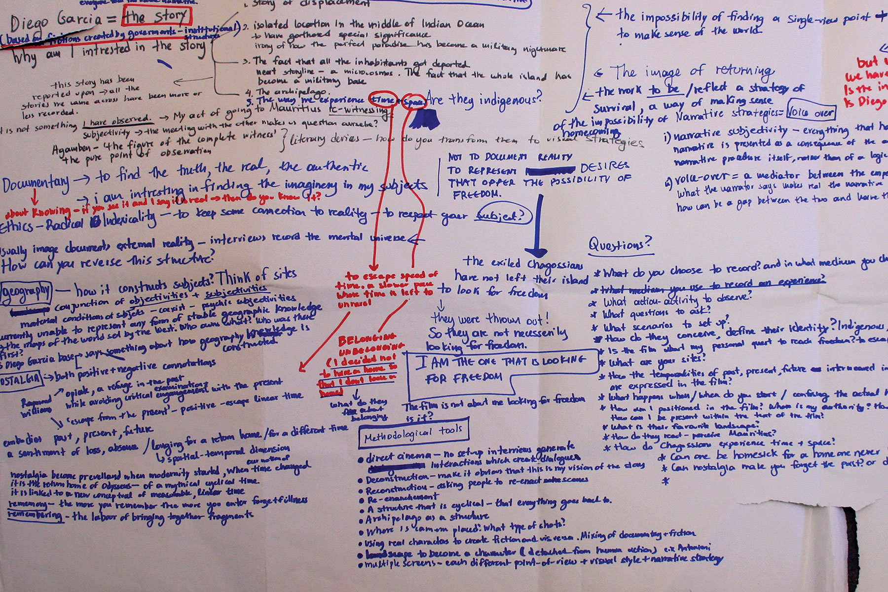 Diego Garcia is an artist’s documentary, which looks at the deportation of the inhabitants of the Chagos Islands in the Indian Ocean (now the site of one of the biggest American military bases in the world) by the British Government to Mauritius. The film juxtaposes text extracts from the Chagossian’s High Court testimonies, which collectively portray the islands as a paradise lost, with a camera that continuously wanders in the Mauritian landscape. These testimonies become the starting point for looking at Mauritius and the Indian Ocean as a complex set of relationships and act as catalysts in unravelling the hidden traces of history inscribed in spaces. The film takes the form of a journey, where landscape becomes the central character. Blending different narrative voices, such as the collective voice of the testimonies, the observational eye of the artist with ambient voices and sounds, the film comments on shifting geographies, on the myth of paradise and on the ways, we inhabit a globalised world.