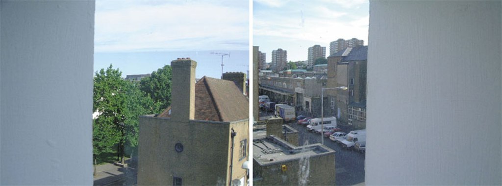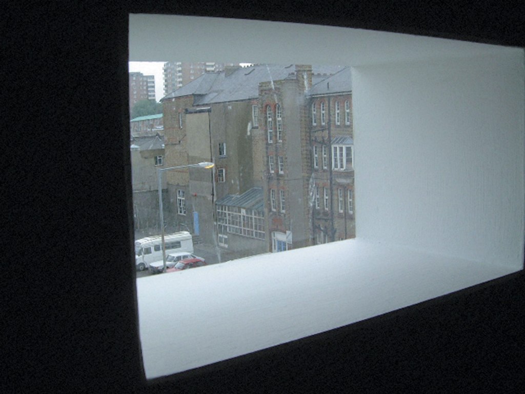 The installation consisted of two purposely made windows. Two concealed speakers were placed in each window. Each speaker featured the voice of one female character engaged in a dialogue and fixed in the space seen through the windows. The sound alternated between the speakers and between the two voices. The installation created two ‘scenes’, carefully guiding the audience’s gaze into certain elements of the space outside the gallery. The absence of the two corresponding voices opened up possibilities for imagining the associations between all the characters and all the different geographical locations. The work was concerned with the relation between the inside of an art’s institution and the outside of the everyday activity. The work was also concerned with the idea of a fixed geographical location and the spatial trajectories that stories can create.