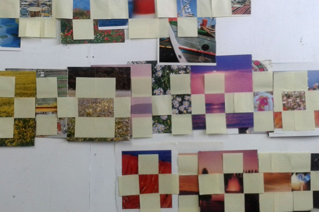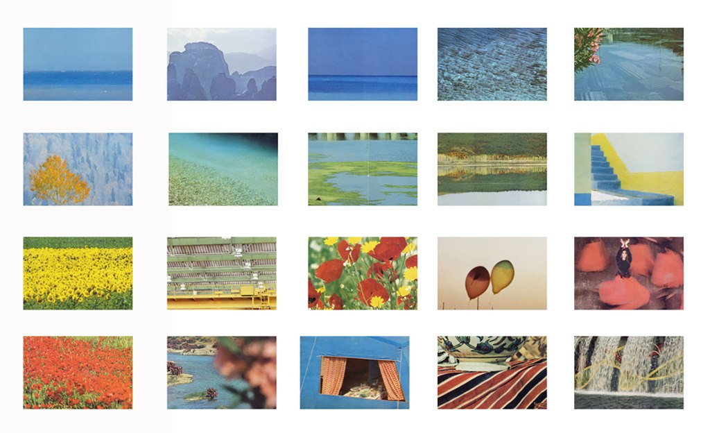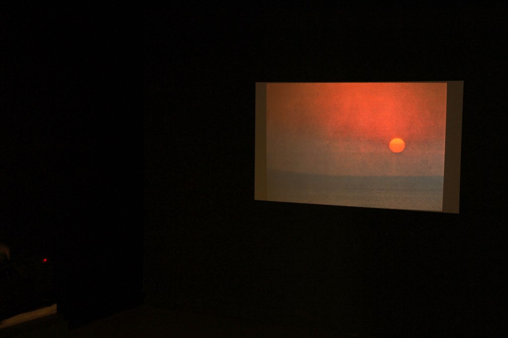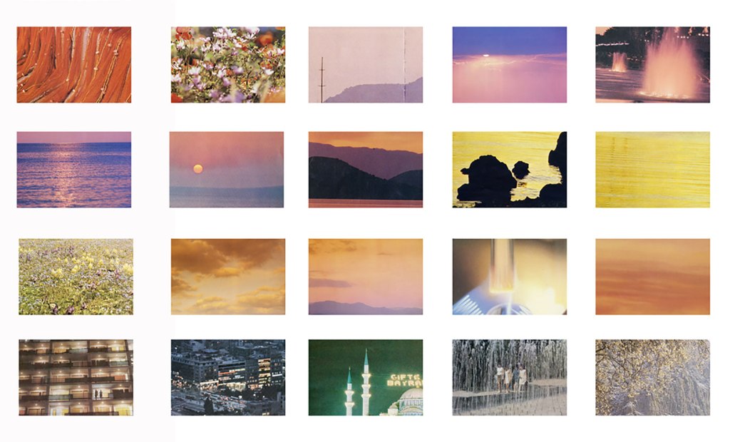 Formless Forms is based on the same pool of images as A Small Guide to the Invisible Seas, sourced from Greek, Turkish and Soviet Armenian tourist catalogues, from the 60s to the 80s. It is the first in a series of works that explore how the photographic techniques of the time produced a colour palette that locates images temporally. The colour variations in the printed photographs allows one to understand if they were produced in the 60s, 70s or 80s. Zooming in on details of the tourist imagery of Greece, Turkey and Soviet Armenia, the slide projection is organised as a continuous colour grading, echoing the movement of the sun as it changes the colour of the landscape. In reimaging the photographic as a sensorial space, the slide projection uses fragments of found material to mimic the form of the timelapse.