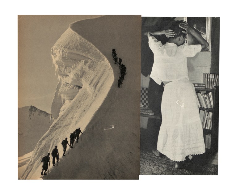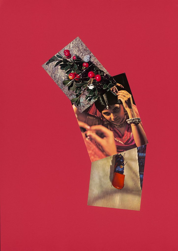 Handbook of the Spontaneous Other is a collage series and photobook (published by MACK in March 2020). Composed of 59 collages on paper, the project brings together a diverse range of found photographic material produced in Western Europe and the USA during the 1960s and 1970s. Casting a female gaze on images of an emerging western lifestyle culture sourced – from pornographic and lifestyle magazines, tourist catalogues and National Geographic spreads – the project questions the role of photography in constructing the working and desiring body. Divided into nine chapters that follow a metaphysical narrative of colour and sensation, the book ultimately seeks to locate a ‘spontaneous other’; a notion of the self and of pleasure that exist beyond the confines of popular culture and its dominant modes of representation. The Handbook invites the viewer to participate in an ambiguous game of playful critique and emotional acceptance of visual and other pleasures. Collaged on colour cardboard paper, the individual works of this series are some of the largest pieces that the artist has produced so far, with dimensions ranging from 1 m x 70 cm (largest) to 30 x40 cm (smallest).