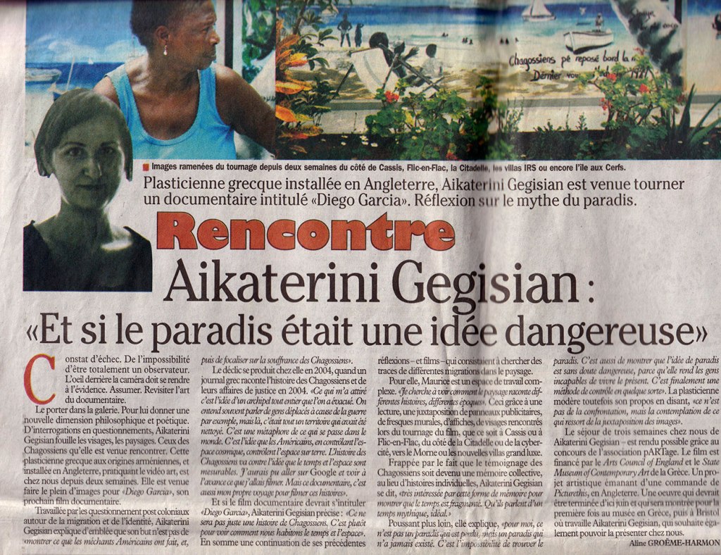 Published on the occasion of fieldwork in Mauritius, for the production of the film Diego Garcia