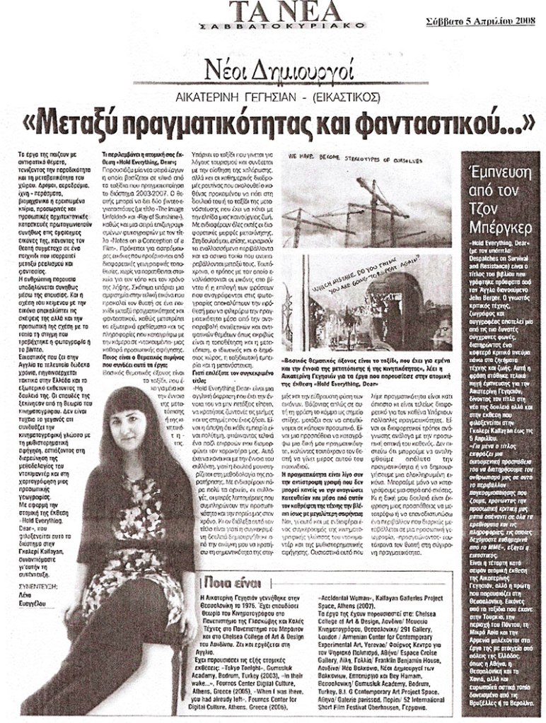 Published on the occasion of the solo exhibition ‘Hold Everything, Dear’ at Kalfayan Galleries- Thessaloniki, March – April 2008
