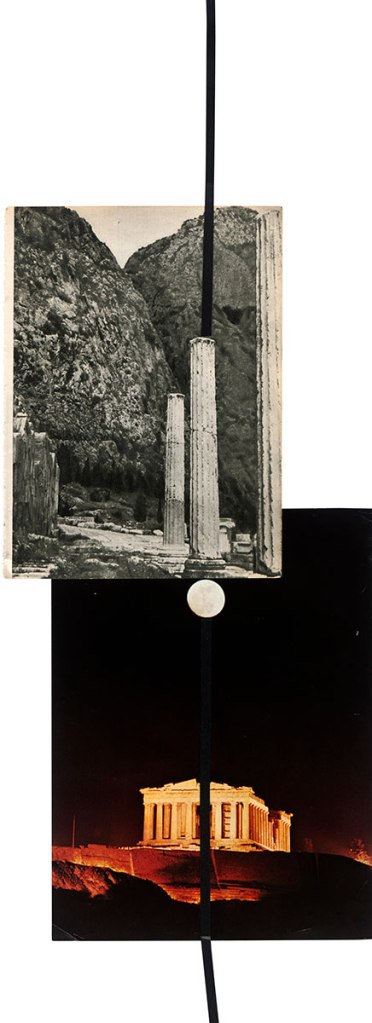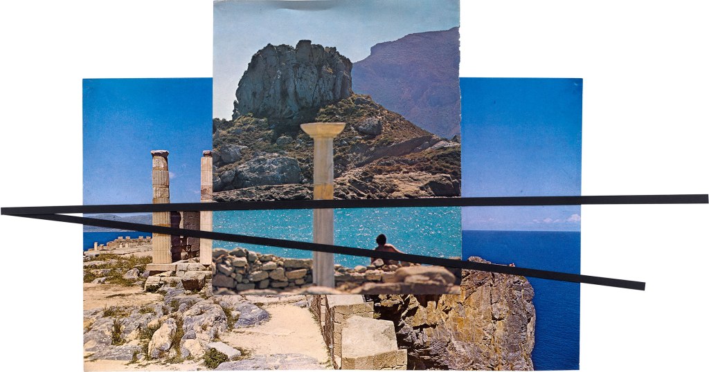 The Black Line moves through ancient temples and sunny seascapes (signifiers of the national and tourist image of Greece), tracing the landscape like a sunray touching the skin. The two recurrent motifs in the construction of Greek national identity, the ancient Greek heritage and the bright sun, merge and mirror each other, only to be separated again by the black line of censorship.