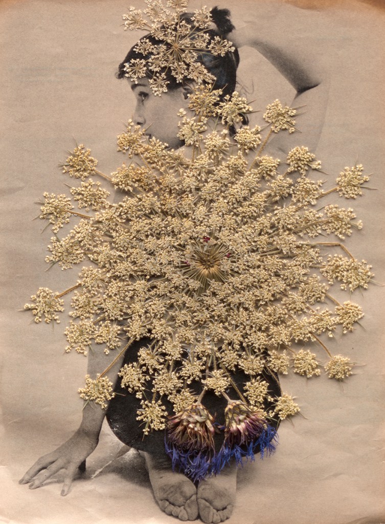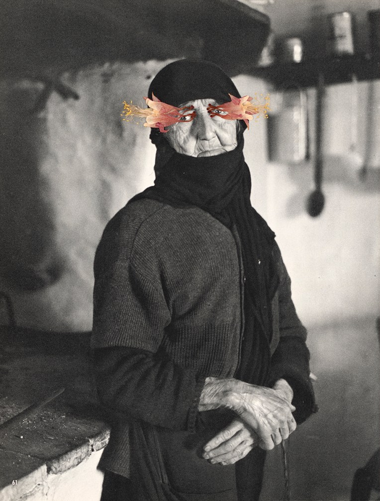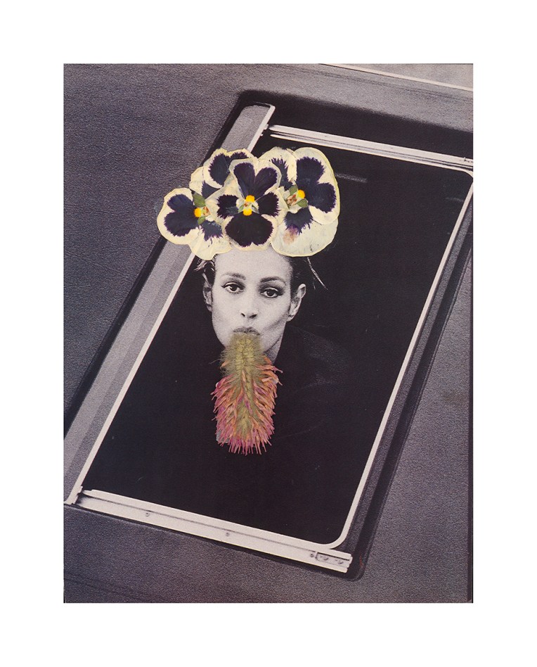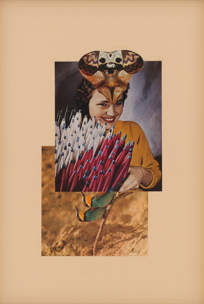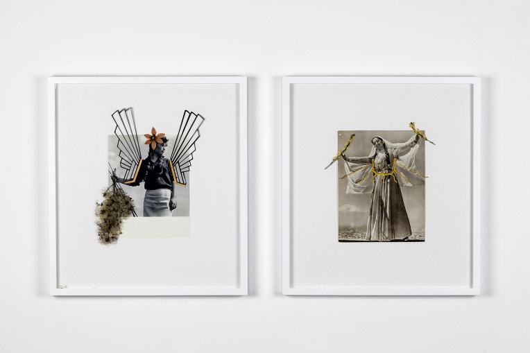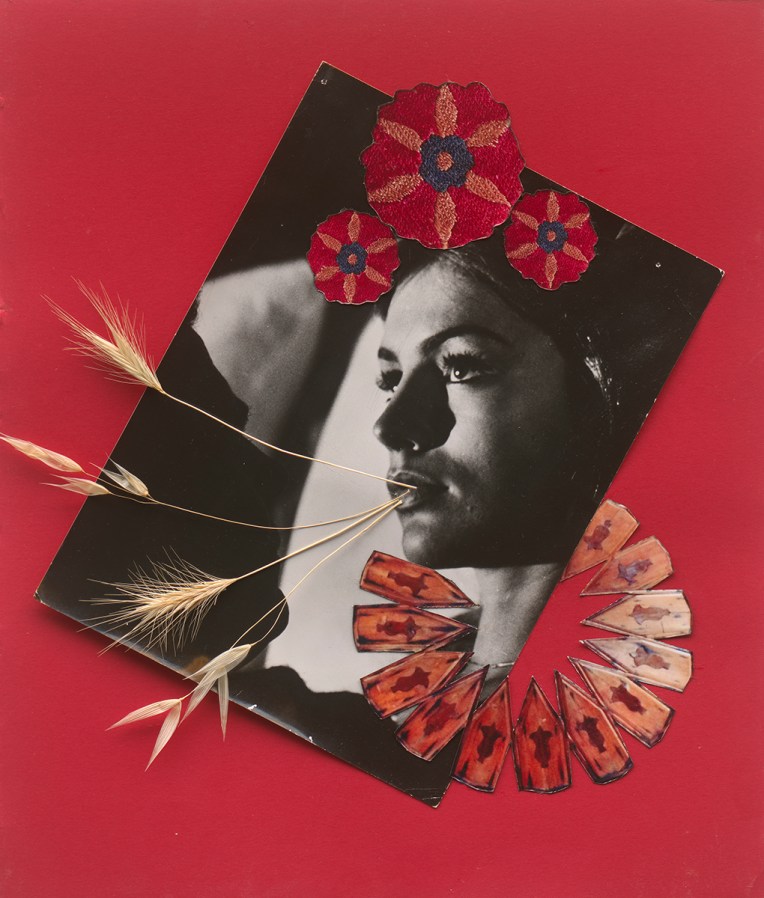 The Goddesses is a collage series that reimagines representations of divine femininity in vernacular cultures, transforming regal, royal, spiritual, and mythical female iconography. Drawing on a range of collage techniques central to Gegisian’s practice—including layered image juxtapositions, the use of dried flowers, circular adhesive dots, and decorative motifs—the series envisions an alternative universe populated by women drawn from popular publications across diverse geographies and eras. These anonymous figures captured by the camera lens are recontextualized as powerful icons. Inspired by Silvia Federici’s call for a “re-enchantment of the world,” each collage becomes an act of speculative mythmaking, proposing a new pantheon of divine feminine power. At its core, The Goddesses reflects on the tension between organic forms and static imagery, between mythic cosmologies and earthly flora.